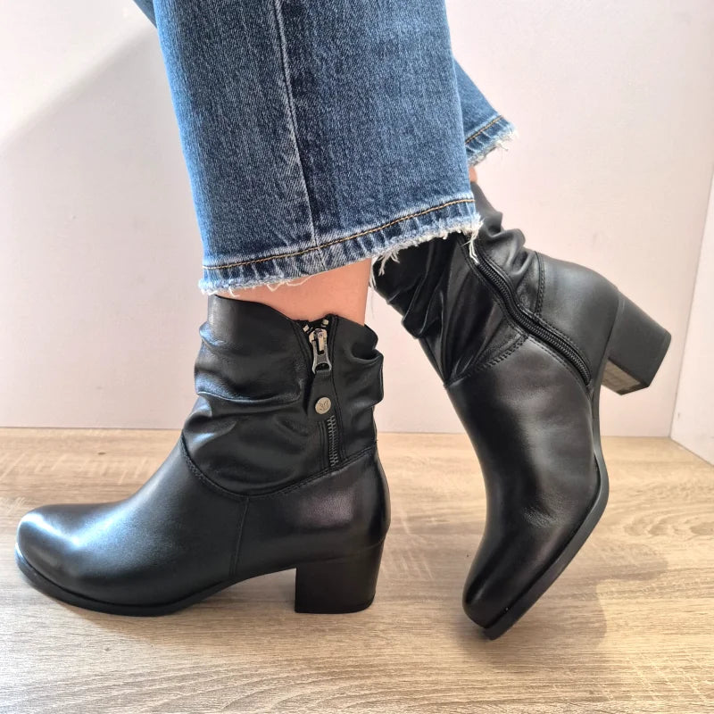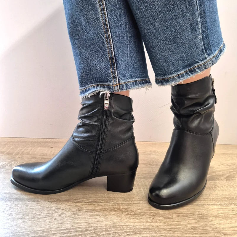 Aceste ghete elegante Caprice sunt alegerea ideală pentru femeile care caută rafinament și confort în sezonul rece. Realizate din piele naturală de înaltă calitate, acestea au un design simplu, dar sofisticat, cu fronță discret plisată și finisaj fin. Tocul de 5 cm oferă o postură elegantă și stabilitate, iar sistemul cu fermoar lateral asigură o încălțare practică și rapidă.