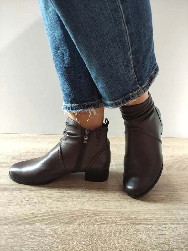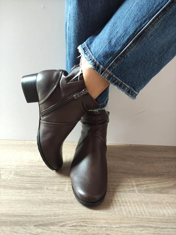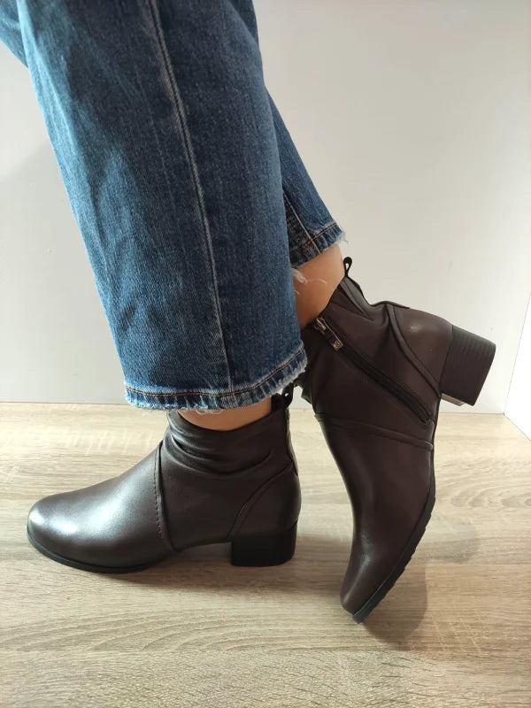 Ghete elegante din piele naturală, cu o linie feminină și detalii fine în zona gleznei. Modelul are lățime H, oferind un plus de confort pentru picioarele mai late. Tocul mediu și stabil completează perfect designul rafinat, iar fermoarul lateral asigură o încălțare ușoară. O alegere inspirată pentru ținutele elegante sau office din sezonul rece.