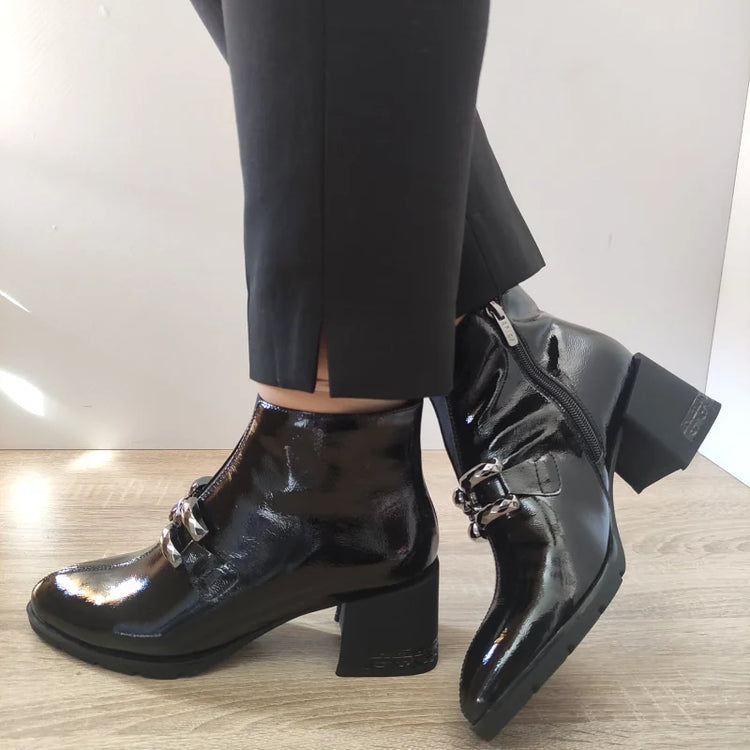 Descriere: Ghetele elegante de damă Epica impresionează prin designul lăcuit și detaliile metalice decorative de pe lateral, fiind ideale pentru a completa o ținută sofisticată. Modelul oferă un stil modern și elegant, perfect pentru evenimente speciale sau ieșiri în oraș.
