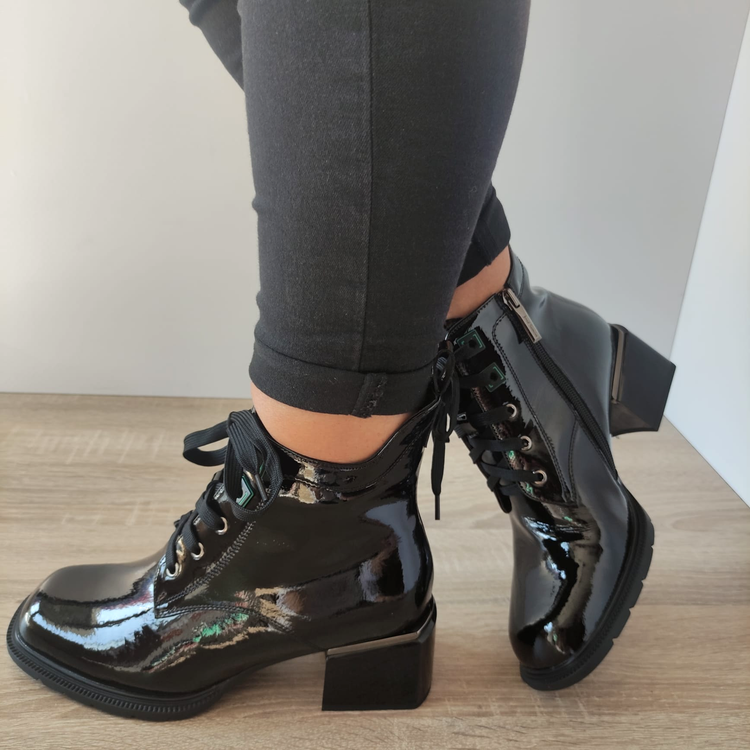 Eleganța și confortul se îmbină armonios în ghetele JOSE SIMON K031-860-1A. Realizate din piele naturală lăcuită, ele strălucesc la fiecare pas, oferindu-ți un look sofisticat. Designul cu închidere pe bază de fermoar asigură o potrivire perfectă, în timp ce tocul gros de 5,5 cm adaugă un plus de grație și stabilitate. Cu o înălțime totală de 19,5 cm, aceste ghete sunt ideale pentru a completa ținutele elegante. Alege JOSE SIMON pentru o combinație reușită de stil și confort.