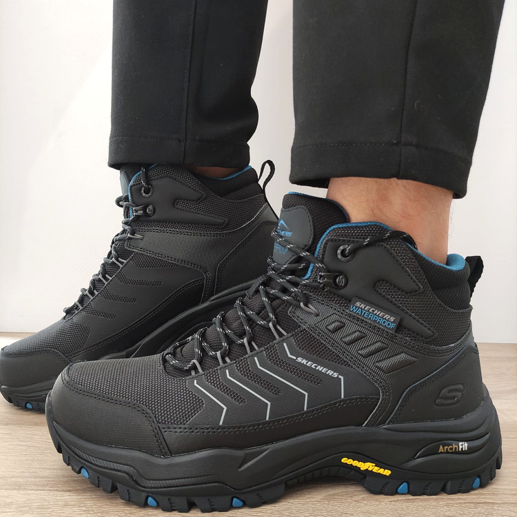 Descoperiți noua definiție a eleganței și funcționalității cu ghețele sport pentru bărbați SKECHERS, cod produs 204634. Combinând pielea naturală cu textilul, aceste încălțări emană o notă de sofisticare, asigurând în același timp durabilitatea și confortul. Cu un sistem de închidere bazat pe șireturi, aceste ghete se adaptează perfect la forma piciorului, oferind suport și stabilitate. Aspectul estetic este îmbogățit de detalii precum accentele albastre și designul în relief, subliniind marca emblematică SKECHERS. Talpa, cu o grosime de 4,2 centimetri și o înălțime totală a pantofului de 13,5 centimetri, oferă un echilibru perfect între stil și confort. Tehnologiile de vârf, Arch Fit, Waterproof și Relaxed Fit, garantează o experiență de purtare optimă, indiferent de condiții. De la protecția împotriva umezelii, până la suportul arcadelor plantare, aceste ghete sunt pregătite să răspundă celor mai înalte standarde ale bărbaților moderni.