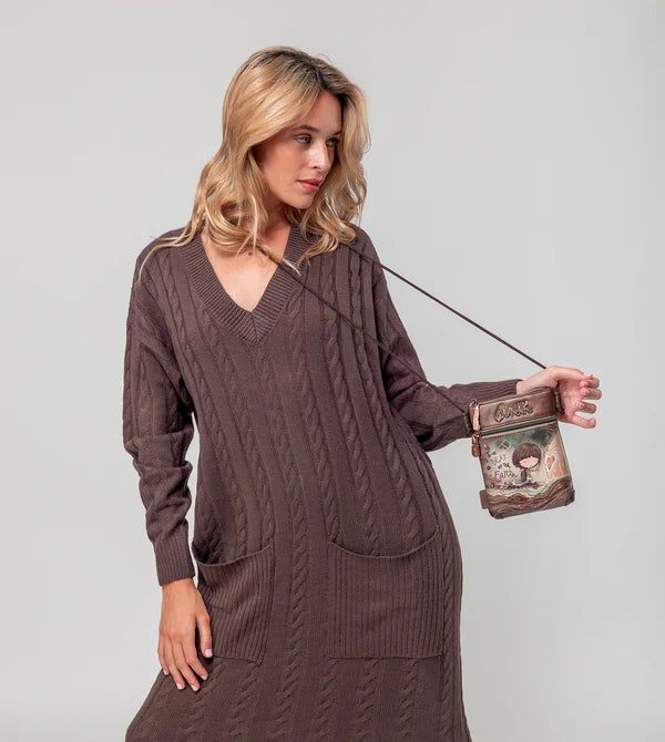 Aceasta geanta de umar este de dimensiuni mici si are inchidere cu fermoar, cu interiorul captusit. In plus, are un buzunar frontal. Mânerul pentru agățat este o curea de umăr subțire din bumbac, tip frânghie.