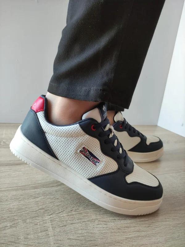 Pantofii casual DECAR 9903 atrag imediat prin designul lor dinamic și sportiv, perfect pentru ținutele de zi cu zi. Construiți din piele ecologică albă perforată, cu inserții contrastante negre și accente roșii discrete, oferă un look modern, dar ușor de asortat. Talpa ușor înălțată și cusăturile vizibile accentuează linia sport, în timp ce sistemul cu șireturi asigură o fixare stabilă.