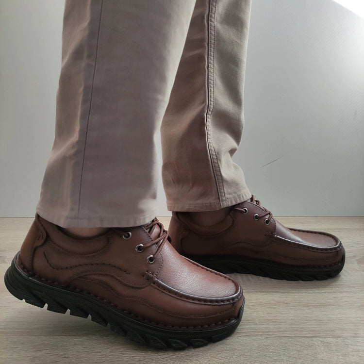 Descriere: Pantofi casual de bărbați Berliner, confecționați din piele naturală de înaltă calitate, în nuanța maro. Acești pantofi oferă confort sporit și un aspect clasic, ideal pentru ținutele de zi cu zi. Închiderea cu șireturi asigură o potrivire optimă, iar talpa de 3 cm oferă stabilitate și confort în timpul purtării. Înălțimea totală a pantofului este de 10 cm, fiind potriviți pentru un stil relaxat, dar elegant.