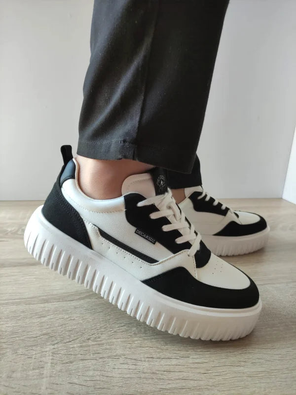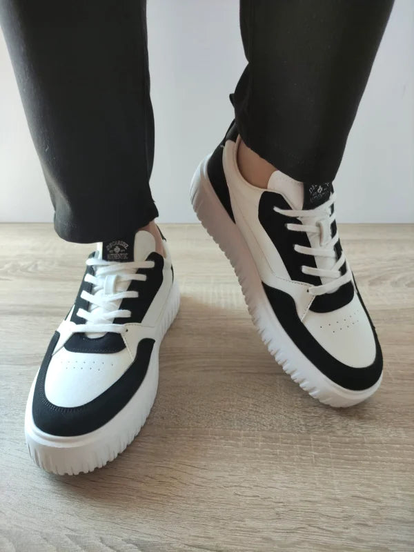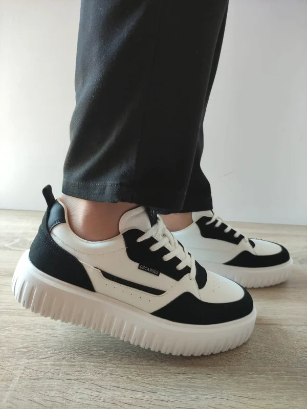 Cu un design urban și talpă robustă, pantofii casual DECAR Y237 îmbină stilul sport cu accente moderne. Construiți din piele ecologică albă, completată de inserții contrastante din velur negru, acești pantofi ies în evidență prin linia îndrăzneață și talpa groasă striată. Modelul oferă un plus de confort și susținere, fiind potrivit pentru plimbări, ieșiri în oraș sau ținute smart-casual.