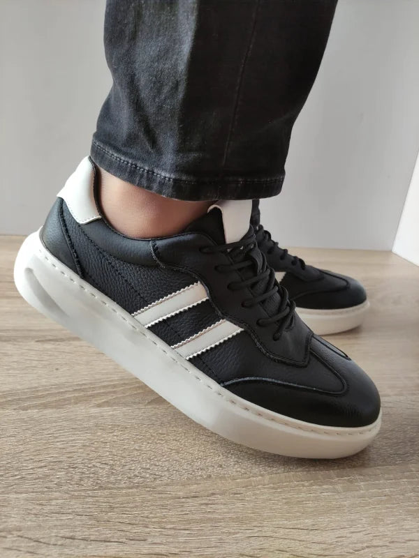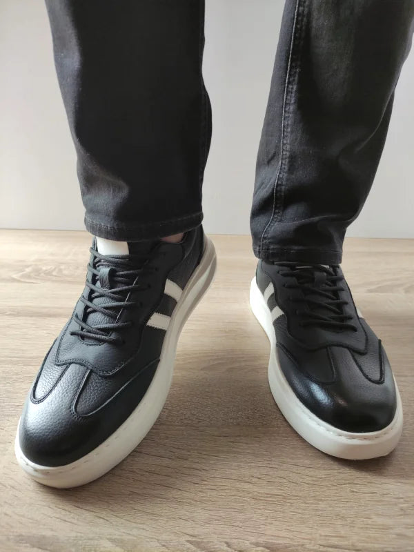 Cu o înălțime totală de 11 cm și o grosime a tălpii (la spate) de 4 cm, acești pantofi sunt perfecți pentru plimbări, activități zilnice sau outfituri smart-casual. Combinația de negru și alb îi face versatili și potriviți pentru orice garderobă masculină.