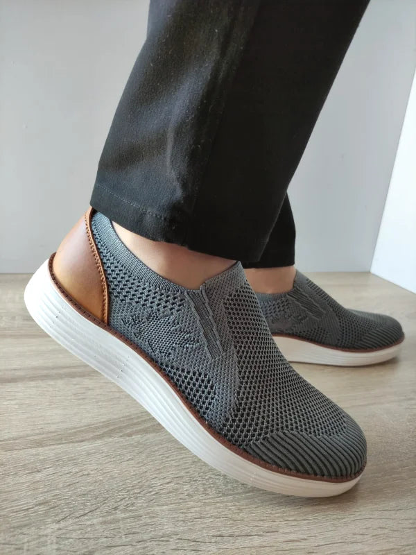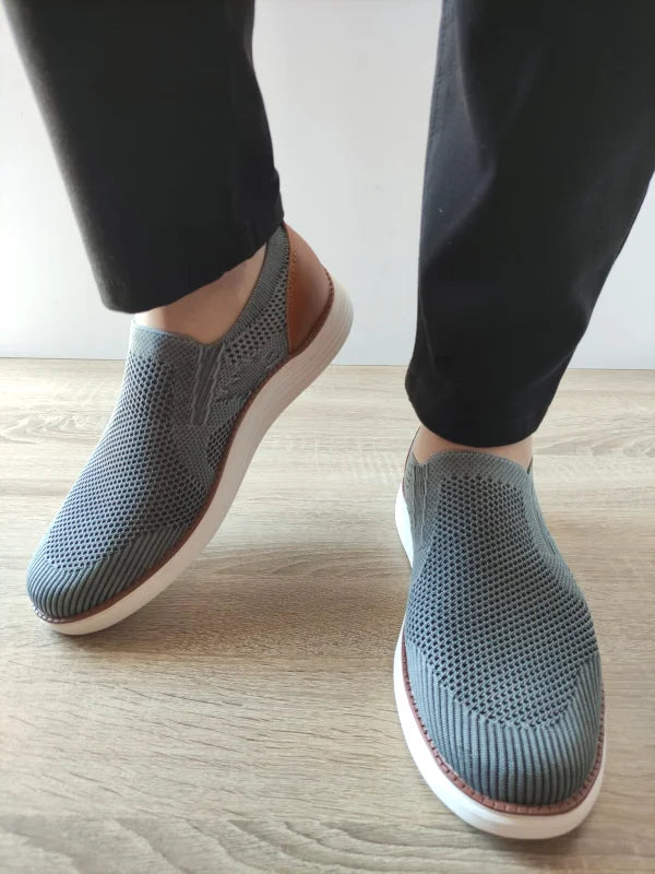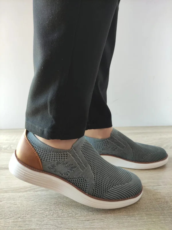 Pantofii casual GIANNI Y190 în nuanță gri sunt ideali pentru zilele călduroase, oferind un echilibru perfect între aerisire, comoditate și stil relaxat. Construiți din material textil tricotat, elastic și respirabil, aceștia se mulează ușor pe picior și se încalță rapid datorită construcției slip-on, fără șireturi. Detaliile maro în zona călcâiului completează armonios designul, iar talpa albă groasă oferă confort la fiecare pas.