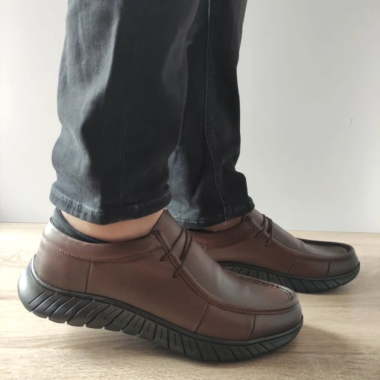 Pantofi casual pentru bărbați, confecționați din piele naturală maro, care oferă atât un look elegant, cât și un confort sporit. Designul simplu și talpa flexibilă le asigură versatilitate, fiind ideali pentru purtarea zilnică.