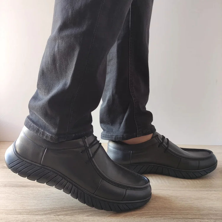 Pantofi casual pentru bărbați, confecționați din piele naturală neagră, ce asigură un aspect elegant și versatil pentru orice stil. Talpa flexibilă și rezistentă oferă un confort sporit, ideal pentru purtarea de zi cu zi.
