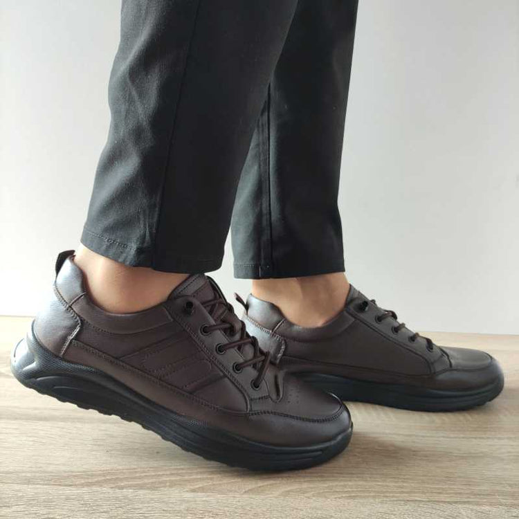 Pantofii casual MELS pentru bărbați, modelul 11231, în nuanțe de maro, sunt confecționați din piele naturală, oferind un stil clasic și confortabil. Sistemul Slip-on cu șiret elastic facilitează o încălțare rapidă și comodă, fiind perfecți pentru activitățile zilnice. Talpa de 3 cm oferă stabilitate și susținere, iar înălțimea totală de 10 cm asigură un confort optim pe tot parcursul zilei.