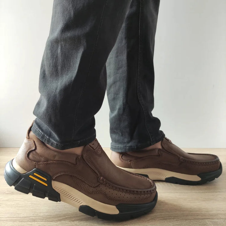 Pantofii casual pentru bărbați MELS 23556 în culoarea maro oferă un design modern și robust, fiind ideali pentru bărbații care caută confort și stil în același timp. Realizați din piele naturală, aceștia au un sistem slip-on cu elastic, facilitând încălțarea rapidă și asigurând o fixare optimă pe picior. Talpa solidă de 3.5 cm adaugă stabilitate și durabilitate, fiind perfectă pentru utilizarea zilnică.