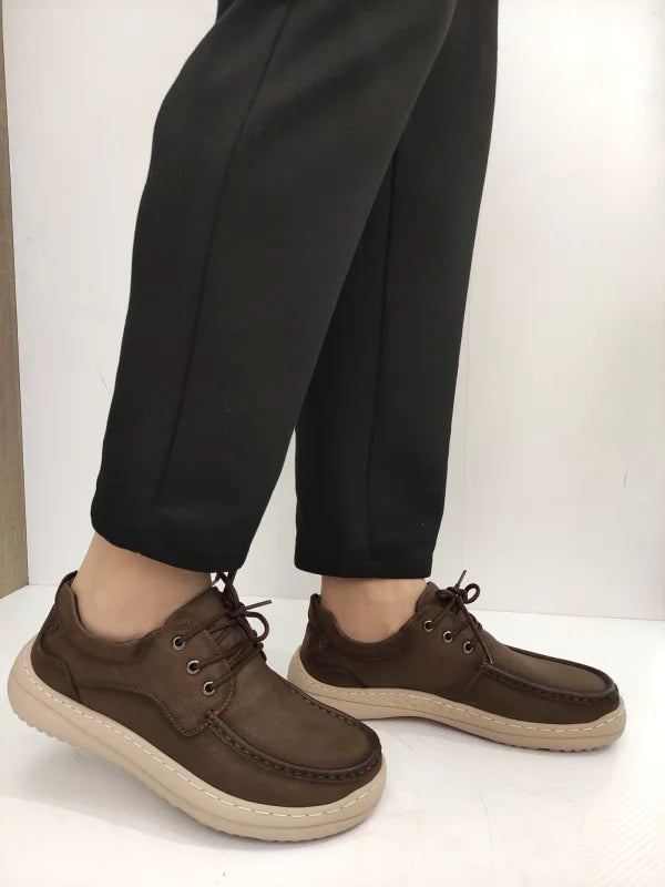 Talpa de 3.5 cm, ușoară și flexibilă, contribuie la un confort optim, iar sistemul de închidere cu șireturi asigură o fixare bună. Nuanța de maro versatil îi face ușor de integrat în orice ținută casual sau smart-casual.