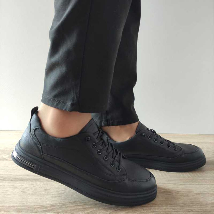 Pantofii casual MELS pentru bărbați, modelul WM2613, în nuanțe de negru, sunt ideali pentru activitățile zilnice datorită designului modern și funcțional. Realizați din piele naturală, acești pantofi oferă un confort sporit și o durabilitate excelentă. Sistemul Slip-on cu șireturi elastice permite o încălțare rapidă și comodă, iar talpa de 2.5 cm oferă o bună susținere și confort pe tot parcursul zilei.