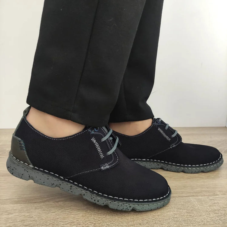 ✔ Material din piele naturală premium – durabilitate și aspect sofisticat. ✔ Talpă flexibilă de 2.5 cm – pentru confort sporit și stabilitate la mers. ✔ Înălțime totală de 9 cm – susținere optimă fără a compromite lejeritatea. ✔ Închidere cu șireturi – ajustare perfectă pentru un plus de confort. ✔ Combinatie navy + gri – un stil versatil, ușor de integrat în orice ținută casual.