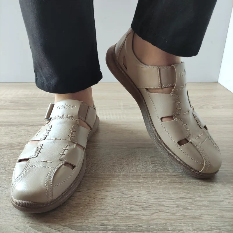 Descriere: Pantofii casual pentru bărbați Rieker 10453-60 sunt concepuți pentru confort sporit în zilele călduroase, combinând piele naturală cu piele ecologică într-un design ventilat și funcțional. Nuanța bej oferă versatilitate, iar decupajele laterale asigură o bună aerisire a piciorului. Sistemul de închidere cu velcro (scai) facilitează încălțarea rapidă și ajustarea optimă. Cu o înălțime totală de 9 cm și grosimea tălpii în spate de 2,5 cm, acești pantofi oferă stabilitate și confort pe parcursul întregii zile.