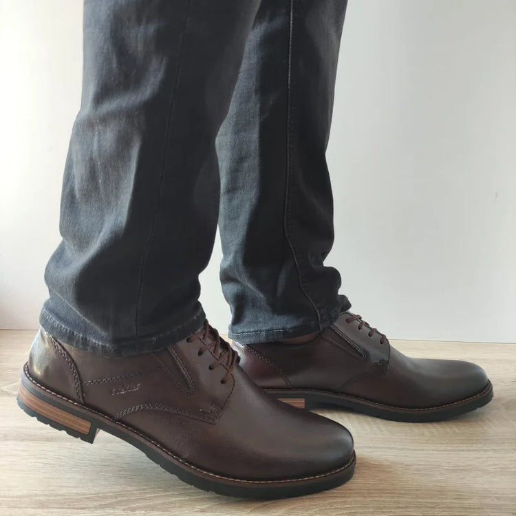 Pantofi casual pentru bărbați, confecționați din combinație de piele naturală și piele ecologică, de culoare maro, ideali pentru un stil clasic și elegant. Sistemul de șireturi asigură o fixare sigură și personalizată, iar talpa de 2.5 cm oferă confort și stabilitate pe toată durata zilei. Acești pantofi sunt perfecți pentru ținutele casual sau semi-formale, oferind un plus de rafinament și eleganță.