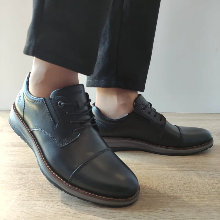 Pantofi casual pentru bărbați, confecționați din piele naturală de culoare neagră, ideali pentru un stil modern și elegant. Sistemul de șireturi oferă o fixare sigură și personalizată, iar talpa de 3 cm asigură confort și stabilitate pe tot parcursul zilei. Acești pantofi sunt potriviți pentru ținutele casual sau semi-formale, aducând un plus de eleganță și rafinament.