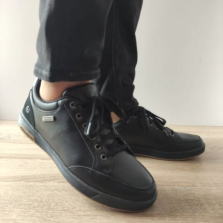 Pantofi casual pentru bărbați, confecționați din piele ecologică de culoare neagră, ideali pentru un stil modern și confortabil. Sistemul de șireturi asigură o fixare sigură și personalizată, iar talpa de 2.5 cm oferă confort și stabilitate pe tot parcursul zilei. Acești pantofi sunt perfecți pentru activitățile zilnice, oferind un plus de funcționalitate și stil.