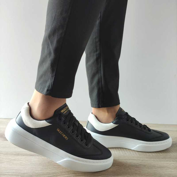 Pantofii casual Skechers pentru bărbați, modelul 232858/BKW, oferă un design modern și stilat, în nuanțe de negru cu detalii albe. Construcția combinată din piele naturală și piele ecologică asigură un aspect elegant și confortabil. Tehnologia Air-Cooled Memory Foam oferă o amortizare excelentă și ventilație optimă pe durata întregii zile. Talpa de 3.5 cm adaugă un plus de confort, iar sistemul de închidere cu șireturi asigură o fixare sigură și personalizată.