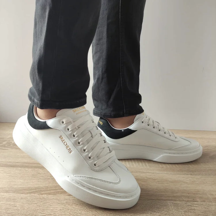 Pantofi casual pentru bărbați, confecționați din piele naturală și piele ecologică de culoare albă, cu detalii negre, ideali pentru un stil modern și confortabil. Sistemul de șireturi asigură o fixare sigură și personalizată, iar tehnologia Air-Cooled Memory Foam oferă un confort deosebit. Talpa de 3.5 cm oferă stabilitate și suport pentru întreaga zi. Acești pantofi sunt perfecți pentru activitățile zilnice, oferind un plus de stil și funcționalitate.