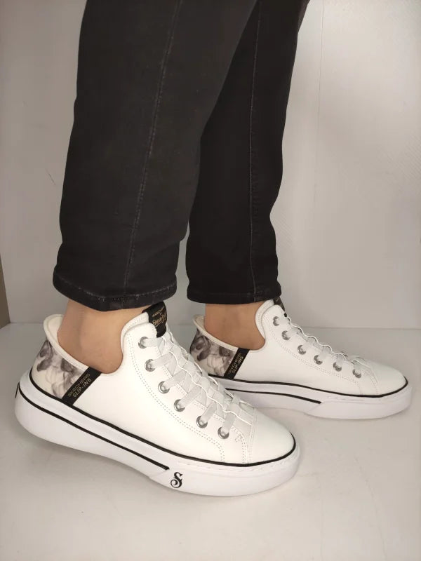 Culoare: Alb, cu accente grafice unice în zona călcâiului
