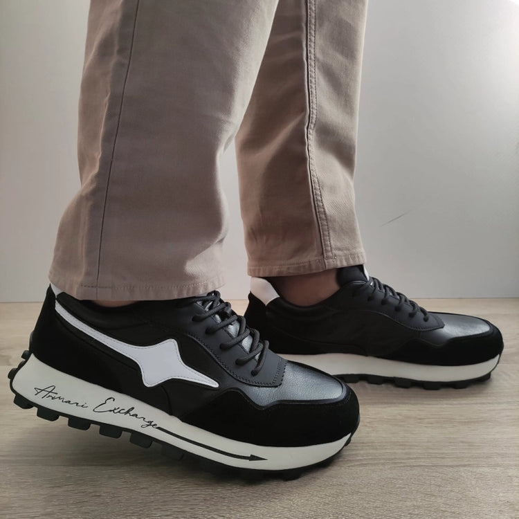 Descriere: Pantofi casual de bărbați marca Stephano, confecționați dintr-o combinație de piele naturală și piele naturală întoarsă, în culorile negru și alb. Acești pantofi moderni și confortabili sunt ideali pentru activitățile zilnice și ținutele casual. Sistemul de închidere cu șireturi asigură o potrivire perfectă, iar talpa de 4 cm oferă suport optim pentru picioare.