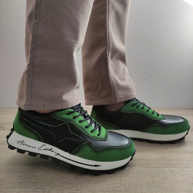 Descriere: Pantofi casual de bărbați marca Stephano, confecționați dintr-o combinație de piele naturală și piele naturală întoarsă, în culorile negru și verde. Acești pantofi au un design modern și sportiv, perfect pentru ținutele casual. Sistemul de închidere cu șireturi asigură o potrivire confortabilă, iar talpa de 4 cm oferă stabilitate și confort pe parcursul întregii zile.