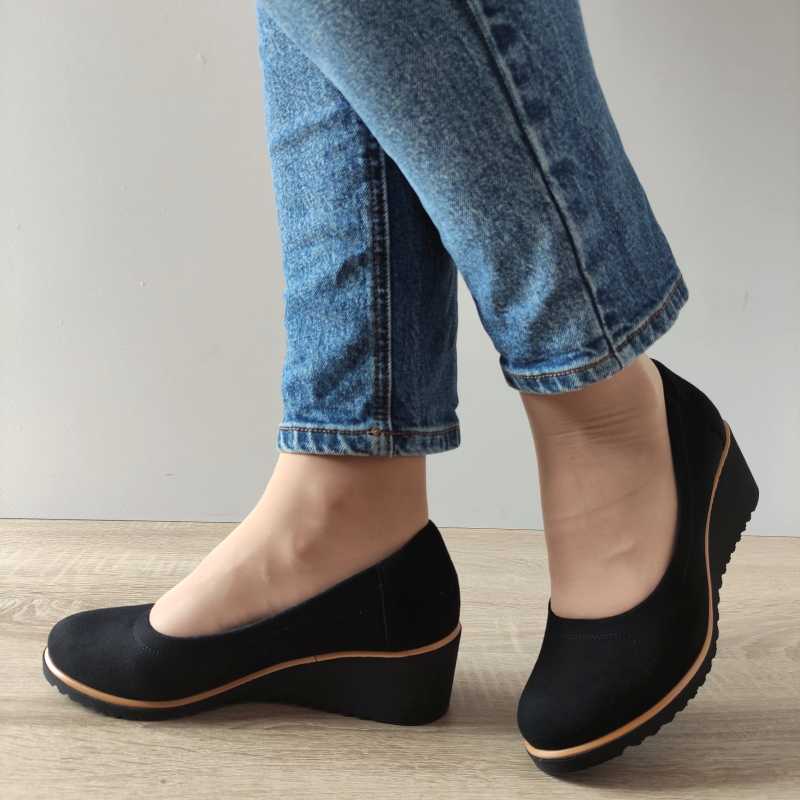 Înălțimea totală a pantofului de 12 cm oferă stabilitate și o postură corectă. Talpa flexibilă și durabilă, de tip slip-on, permite o încălțare ușoară și rapidă.