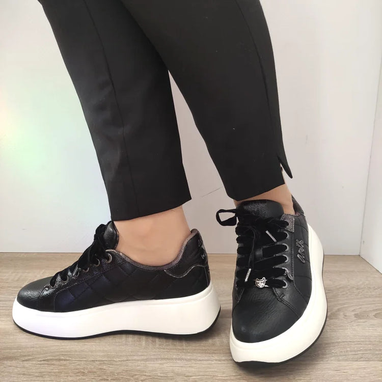 Pantofi casual pentru damă, marca Anekke, confecționați din piele ecologică de culoare neagră, ideali pentru un stil modern și confortabil. Designul slip-on cu fermoar și șireturi asigură o încălțare rapidă și un aspect distinct. Talpa înaltă de 5 cm oferă un plus de stil și confort, perfect pentru activitățile zilnice.