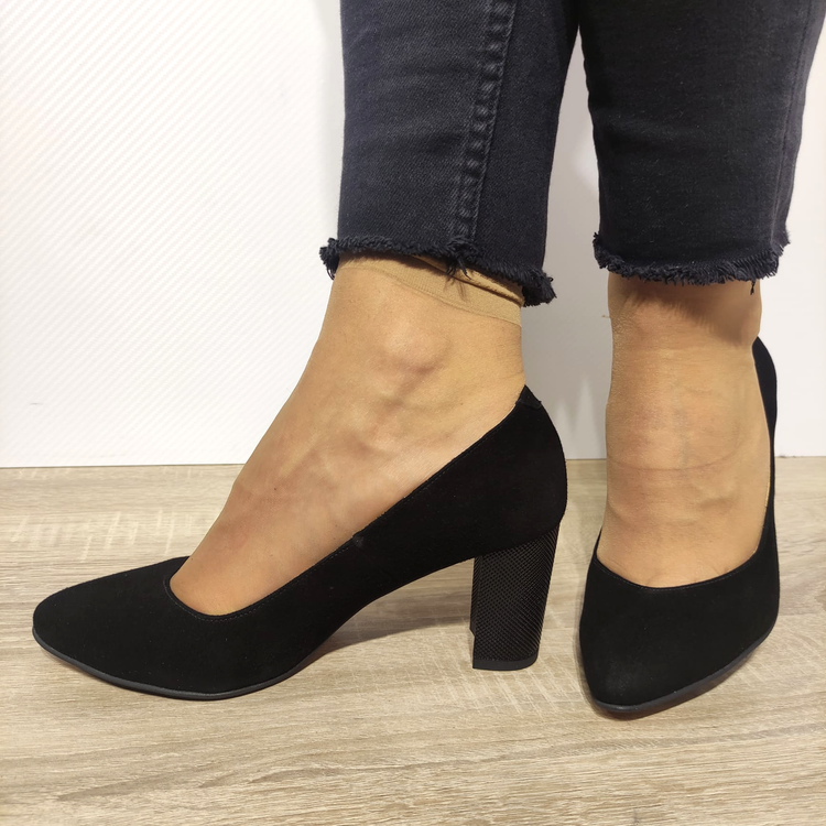 Descoperă eleganța și confortul cu noii noștri pantofi casual pentru damă, modelul ANTONIO 21216, o combinație perfectă de stil și funcționalitate. Realizați dintr-un mix rafinat de piele întoarsă, acești pantofi se caracterizează prin ușurința cu care pot fi încălțați, datorită designului lor slip-on. Tocul gros, cu o înălțime de 7,2 centimetri, oferă suport și stabilitate, în timp ce înălțimea totală a pantofului de 14 centimetri asigură o prezență impunătoare. Ideali pentru orice garderobă modernă, acești pantofi îmbină confortul de zi cu zi cu eleganța necesară pentru orice ocazie