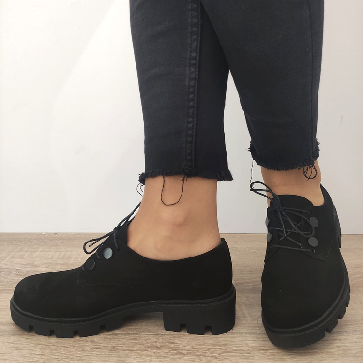 Cu materialul exterior din piele întoarsă și sistemul de închidere cu șireturi, acești pantofi sunt atât eleganți, cât și versatili. Înălțimea totală a pantofului este de 10,5 centimetri, iar grosimea tălpii tocului este de 4,2 centimetri, oferindu-vă un suport confortabil pentru picioare și un aspect stilat.