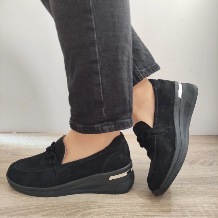 Descriere: Pantofi casual de damă marca Caprice, confecționați din piele naturală întoarsă, cu un design elegant și practic, în culoarea negru velur. Acești pantofi slip-on sunt ideali pentru o zi relaxată, oferind confort și o notă de stil casual-chic. Lățimea lor confortabilă și talpa de 5 cm contribuie la un look modern și o purtare comodă.