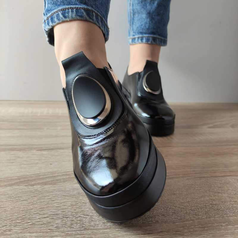Descriere: Pantofi casual de damă Dogati confecționați din piele naturală lăcuită, oferind un aspect lucios și modern. Modelul slip-on cu elastic facilitează încălțarea rapidă și confortul pe durata purtării. Un detaliu decorativ metalic atrage atenția asupra designului minimalist și elegant, ideal pentru ținute casual-chic. Talpa înaltă de 5 cm asigură un plus de confort și stil, fără a compromite stabilitatea.