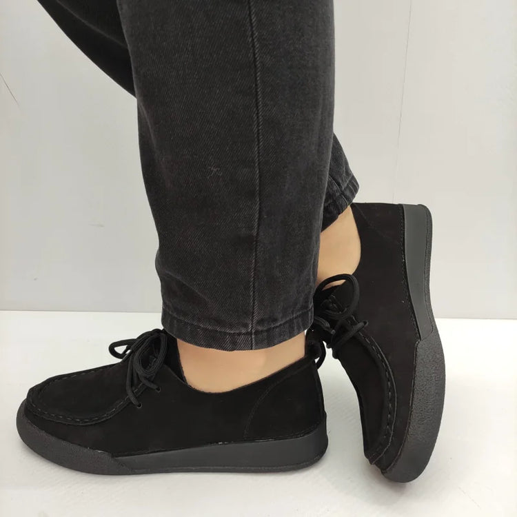 Descriere: Cu un design simplu, dar de efect, acești pantofi negri din piele naturală aduc un aer modern și relaxat în orice ținută de zi. Construcția cu cusături vizibile și vârful rotunjit oferă un look plăcut, iar talpa comodă și flexibilă asigură confort sporit pe tot parcursul zilei. Sistemul de închidere cu șireturi conferă stabilitate, fiind o alegere inspirată pentru un stil casual și funcțional.