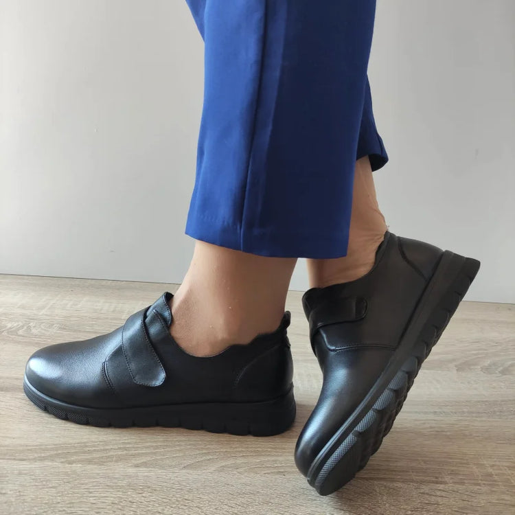 Acești pantofi casual pentru damă marca Formazione sunt o alegere ideală pentru confortul zilnic. Realizați din piele naturală, oferă o senzație plăcută și o rezistență superioară în timp. Designul clasic și sistemul de închidere cu velcro asigură o fixare ușoară și sigură, potriviți pentru diverse activități zilnice. Culoarea neagră adaugă un plus de eleganță, fiind ușor de integrat în orice garderobă.