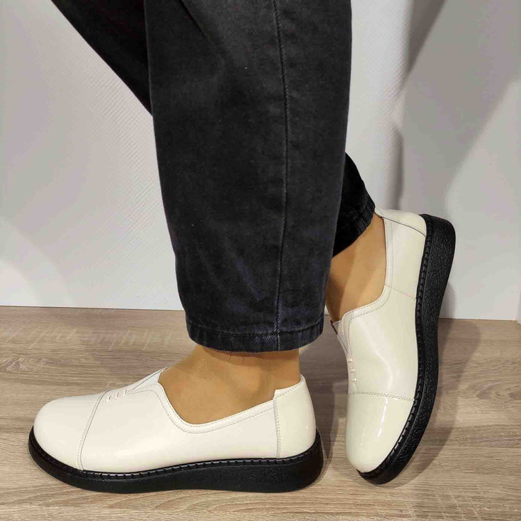 Descoperiți combinația perfectă de stil și funcționalitate cu pantofii casual FORMAZIONE 2255H12. Realizați pentru doamnele care apreciază detalii rafinate, acești pantofi combină pielea naturală cu pielea lacuită, oferind un contrast subtil și elegant. Închiderea slip-on cu elastic asigură o potrivire confortabilă și adaptabilă, fiind optimă pentru zilele în care doriți să arătați impecabil, dar să vă simțiți și în confort maxim.