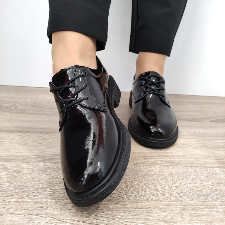 Materialul exterior din piele naturală lăcuită conferă acestor pantofi un aspect luxos și o durabilitate remarcabilă. Sistemul de închidere cu șireturi nu numai că oferă un aspect elegant, dar și asigură un confort personalizat și o fixare sigură pe picior.