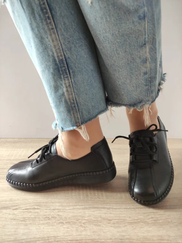 Acești pantofi casual Formazione sunt confecționați din piele naturală, oferind confort și rezistență la purtare zilnică. Designul simplu, cu închidere pe șireturi, asigură o fixare stabilă și o potrivire adaptată fiecărui pas. Talpa flexibilă, cu o grosime de 3 cm în partea din spate, aduce un plus de confort și siguranță la mers. Cu o înălțime totală de 9.5 cm, acest model este alegerea practică pentru ținutele casual de zi cu zi, păstrând totodată un aspect modern și elegant în nuanța clasică de negru.