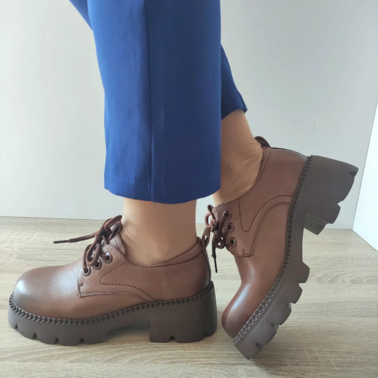 Acești pantofi casual pentru damă marca Formazione se remarcă prin designul robust și modern. Construiți din piele naturală, oferă un confort sporit și o durabilitate crescută. Talpa înaltă și sistemul de închidere cu șireturi asigură o susținere optimă, fiind potriviți pentru a adăuga un plus de stil oricărei ținute. Culoarea maro îi face versatili și ușor de asortat.