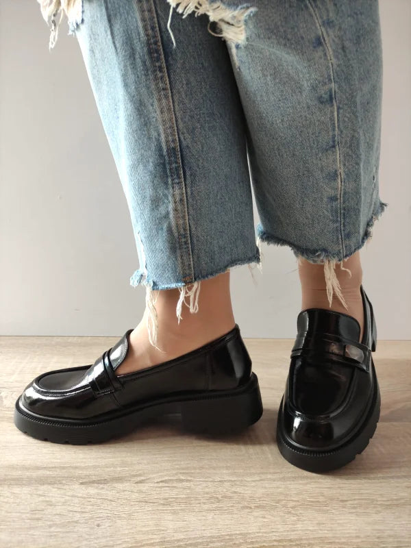 Acești pantofi casual Formazione se remarcă prin finisajul elegant din piele naturală lăcuită, cu aspect lucios, ce oferă un plus de rafinament ținutelor de zi cu zi. Designul tip slip-on permite încălțarea rapidă, în timp ce talpa solidă, cu un toc de 4 cm, aduce stabilitate și confort. Cu o înălțime totală de 10.5 cm, modelul reușește să combine stilul clasic cu accente moderne, fiind alegerea potrivită pentru femeile care caută pantofi practici și sofisticați în același timp.