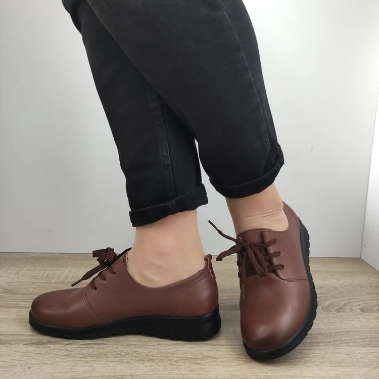 Descriere: Pantofi casual pentru damă, marca Formazione, confecționați din piele naturală de culoare maro. Acești pantofi sunt ideali pentru confortul zilnic, având un design clasic și elegant, potrivit pentru diverse activități. Sistemul de închidere cu șireturi asigură o ajustare optimă și confortabilă, iar talpa de 3 cm contribuie la o bună stabilitate pe orice suprafață.