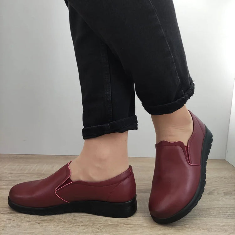 Descriere: Pantofi casual pentru damă, marca Formazione, confecționați din piele naturală de culoare bordo. Acești pantofi oferă un design modern și comod, fiind potriviți pentru utilizarea zilnică. Sistemul slip-on facilitează încălțarea rapidă și confortabilă, iar talpa de 3 cm oferă stabilitate și susținere pentru activitățile de zi cu zi.