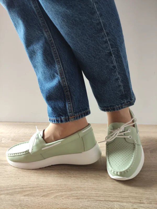 Descriere: Un model cu un aer proaspăt și modern, perfect pentru zilele active. Nuanța vernil delicată aduce un plus de naturalețe ținutelor de primăvară-vară. Talpa albă ușoară și moale oferă confort pe tot parcursul zilei, iar perforațiile din partea frontală asigură o bună respirabilitate. Combinație ideală între stil sport și eleganță casual.