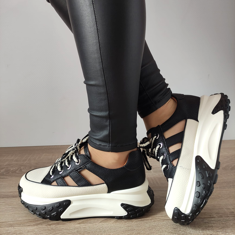 Închiderea cu șireturi oferă o potrivire sigură și ajustabilă, astfel încât să te simți confortabil pe tot parcursul zilei. Talpa cu o grosime de 5,5 centimetri și înălțimea totală de 12 centimetri completează aspectul acestor pantofi, oferindu-ți un suport optim și un stil elegant în același timp.