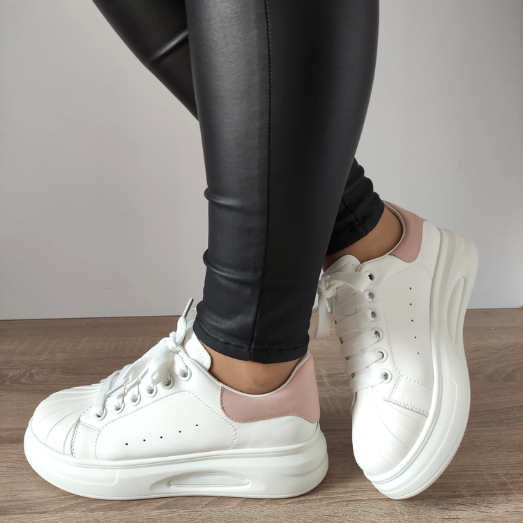 Cu un sistem de închidere cu șireturi, acești pantofi asigură o potrivire sigură și reglabilă pentru a te simți confortabil în timpul purtării. Talpa cu o grosime de 3,5 centimetri și o înălțime totală de 10,5 centimetri oferă susținere și stabilitate, în timp ce talpa fără toc, cu o înălțime mai mare, completează aspectul modern și urban al acestor pantofi.
