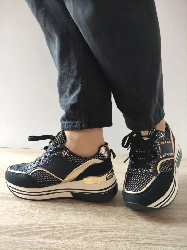 Pantofi Casual Damă Jomix WSC250125-1 Negru + Auriu – Energie Urbană cu Accente Glam