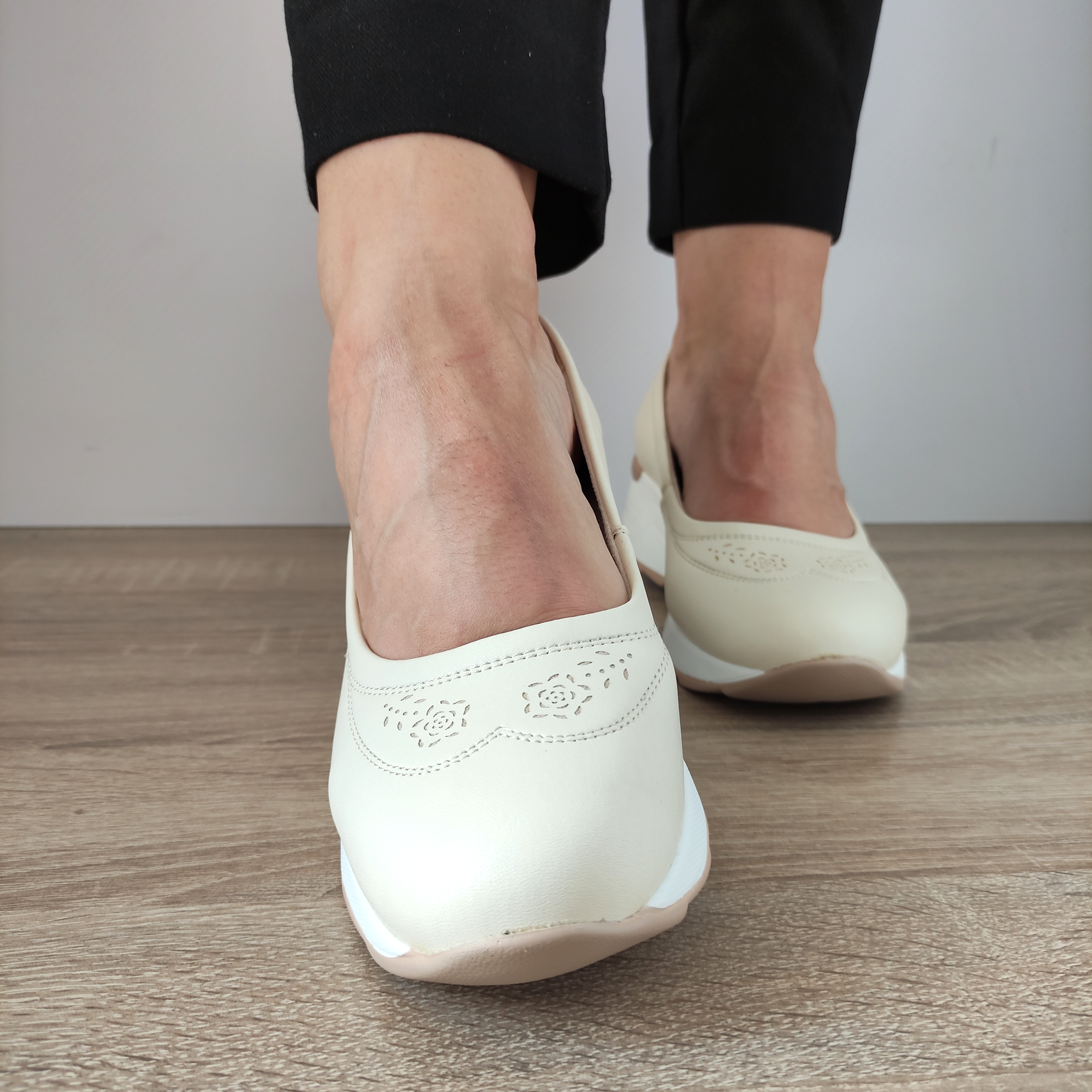 Îți prezentăm pantofii casual pentru damă de la Karisma, modelul 40008B 52-N. Acești pantofi sunt confecționați din piele naturală, oferind un aspect elegant și o durabilitate sporită. Nuanța bej adaugă o notă de rafinament, perfectă pentru ținutele casual. Sistemul de închidere slip-on asigură o încălțare rapidă și ușoară, iar talpa de 5 centimetri oferă suport optim. Înălțimea totală a pantofului este de 11.5 centimetri, asigurând un confort sporit pe durata întregii zile.
