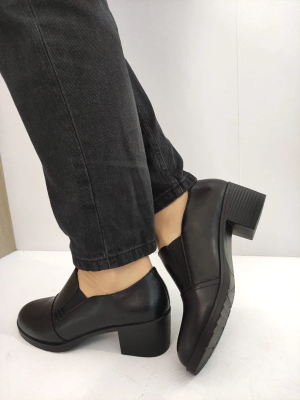 Descriere: Pantofii casual damă Karisma 60010A 01-N în nuanță neagră îmbină eleganța clasică cu confortul modern. Realizați din piele naturală, aceștia sunt potriviți pentru zilele în care îți dorești un plus de stil fără a renunța la comoditate. Tocul gros și stabil oferă susținere optimă, iar sistemul slip-on cu inserții elastice facilitează încălțarea rapidă și flexibilitatea în timpul mersului.