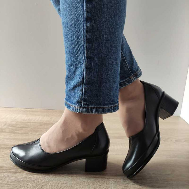 Pantofi casual pentru femei NICOLIS, ideali pentru un look elegant și confortabil. Realizați din piele naturală de culoare neagră, acești pantofi oferă o combinație perfectă între stil și confort. Designul slip-on asigură o încălțare ușoară, iar tocul stabil de 4.8 cm oferă un plus de înâlțime și eleganță. Cu o înălțime totală de 12 cm, acești pantofi sunt ideali pentru a fi purtați atât la birou, cât și la ieșiri informale.