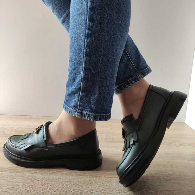 Pantofi casual pentru femei NICOLIS, realizați din piele naturală de culoare verde, cu un detaliu decorativ sub formă de albină. Acești pantofi combină stilul modern cu un plus de personalitate, fiind ideali pentru ținutele de zi cu zi. Designul slip-on facilitează încălțarea, iar talpa de 4 cm oferă confort și susținere. Cu o înalțime totală de 10 cm, acești pantofi sunt o alegere excelentă pentru femeile care doresc să adauge un element distinctiv ținutelor casual.